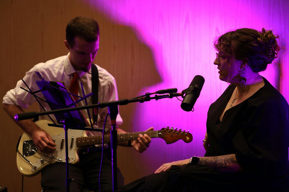 Saint Boneface is a voice and electric guitar duo consisting of Gina Marie Falk and John Secunde. Their repertoire spans from medieval chants to contemporary rock, all brought together into an indie classical style. They are interested in demystifying the concert experience and bringing their music into the community.