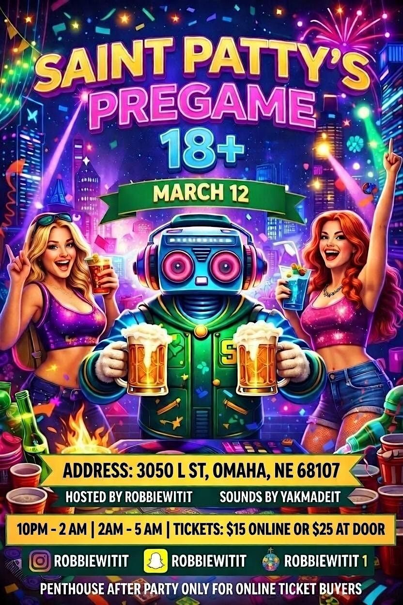 Saint pattys pregame!! Come drink dance and blackout penthouse after party