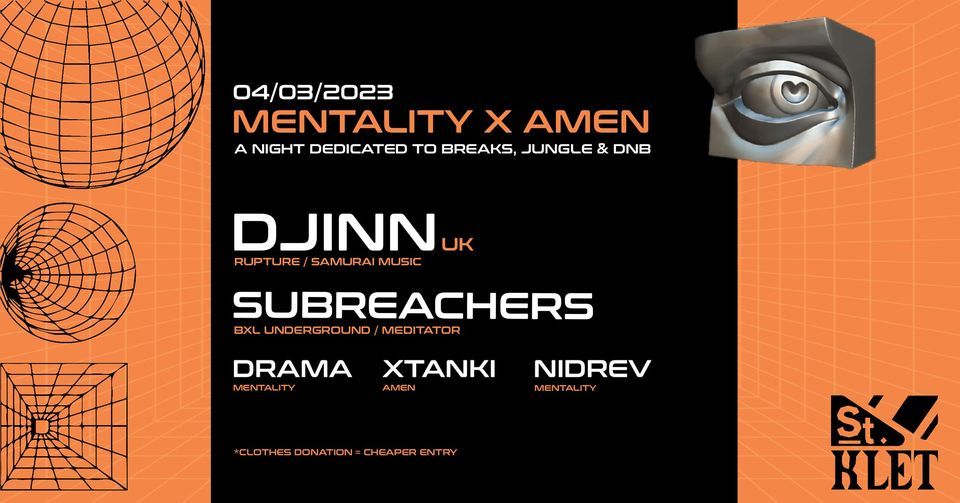 ✧ ?????????We’re pleased to finally announce the first party in Saintklet’s winter-season - Mentality x AMEN - a joint collaboration between two seasoned promoters to bring you an intimate night full of breaks, jungle and drum’n’bass.