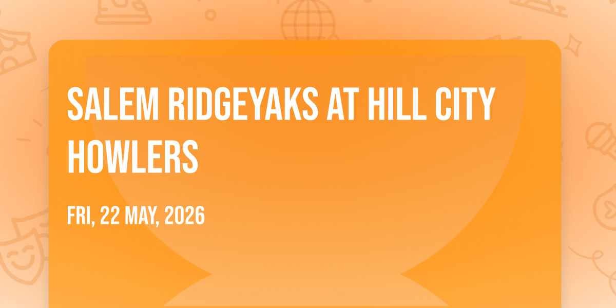 📍 Location: 37.393, -79.1661✨ Enter a world of endless possibilities at Salem RidgeYaks at Hill City Howlers, where every moment tells a story! 🏛️ The stunning Bank of the James Stadium in vibrant Lynchburg, VA transforms into a realm of wonder on May 24th, 2026 at 06:00 PM. 🌟 They have crafted an experience that goes beyond the ordinary, combining elements of surprise, delight, and pure entertainment. Every detail has been thoughtfully considered to ensure your journey with us is nothing short of extraordinary. 🎯 Join fellow adventure seekers and memory makers in this celebration of imagination and innovation. 🎊 Reserve your spot today and be part of something truly special!