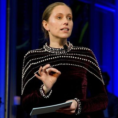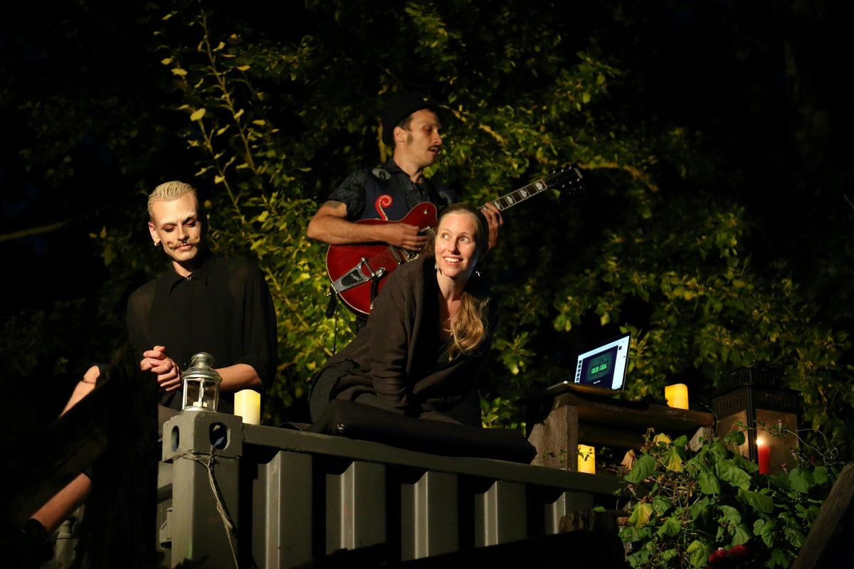 Gastgeberin und Sängerin Ines Theileis führt durch einen außergewöhnlichen Salonabend, bei dem Akrobatik, Musik und Wissenschaft zu einer einzigen Performance verschmelzen.