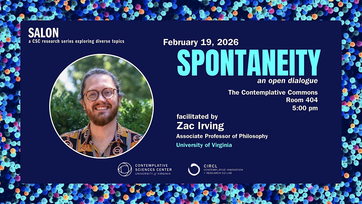 Salon is a monthly open dialogue on cutting-edge research related to contemplation and flourishing with UVA and local community members in the Contemplative Commons, hosted by the Contemplative Sciences Center's CIRCL: Contemplative Innovation + Research Co-Lab. Centered on a single word, these gatherings bring together scholars, scientists, and practitioners from diverse perspectives to exchange ideas, generate knowledge, and seek solutions to global challenges. CSC Research home.