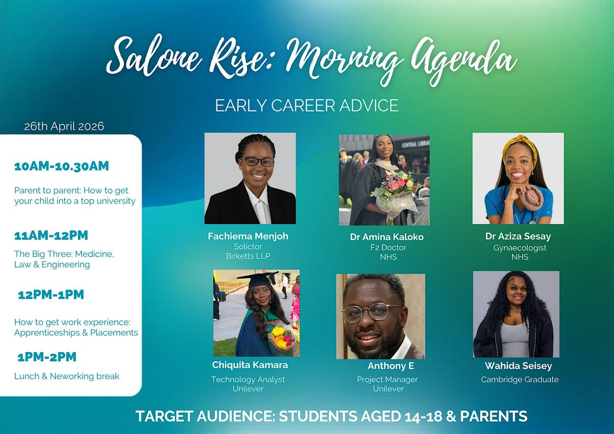 Unsure how to get into a top University? Desire of a career change? Looking for a well paid job that isn’t souless? Salone rise will connect you to professionally who have navigated various paths and their stories should help give you clarity on your journey.