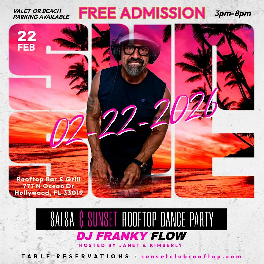 Join us for a spectacular afternoon rooftop party "salsa style"! Dance salsa and bachata, merengue, on the rooftop of the Costa Resort on Hollywood Beach at the Sunset Club. Enjoy dancing to Latin Music, have dinner, appetizers, drinks, and enjoy the beautiful sunset to a live DJ. Beach attire.