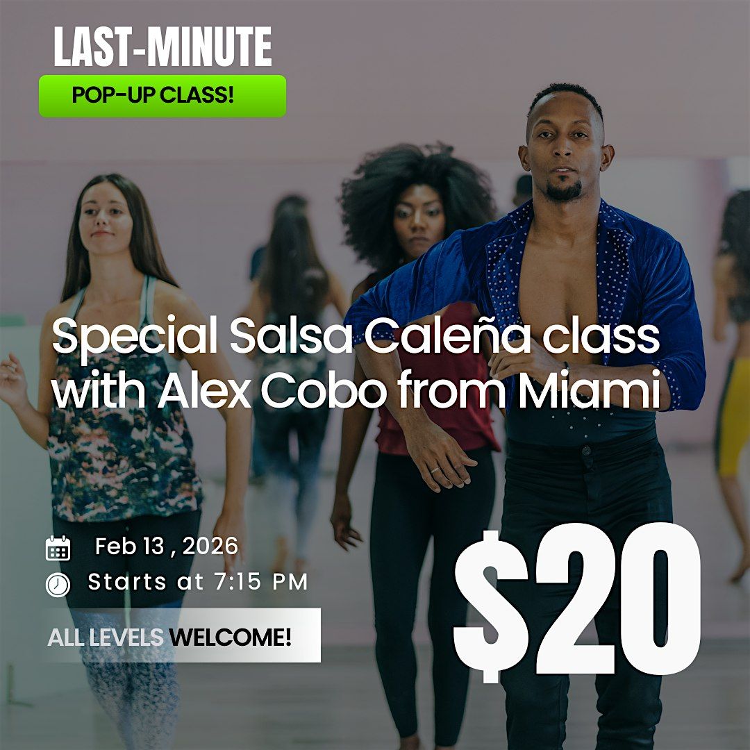 Join us Feb 13 at 7:15 PM (check-in at 7:00 PM) for a special Salsa Caleña class with Alex Cobo from Miami.
