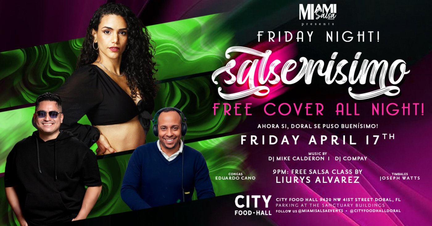 What you all have been waiting for! Get your dance shoes ready, invite your friends and families for a great Salsa nightout in Doral! Come early for class, dinner, and drinks and get ready to dance the night away with all your favorite dancers and latin music lovers!