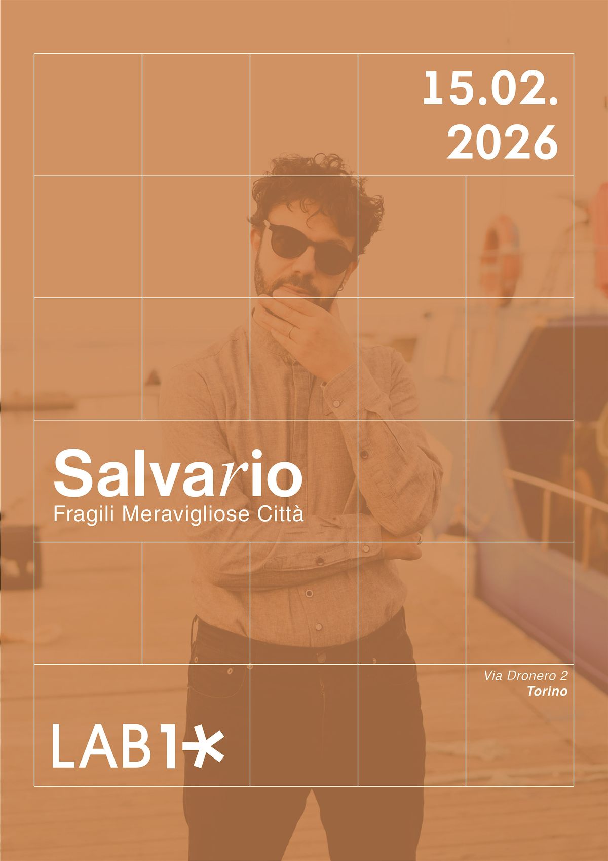 Domenica 15 febbraio 2026, il cantautore Salvario torna in uno dei luoghi dove la sua musica ha preso forma: il Lab10 Studio di Torino. In questo spazio, che ha visto nascere parte del nuovo album Fragili Meravigliose Città, l’artista presenterà il suo ultimo lavoro in una veste acustica e profondamente intima.