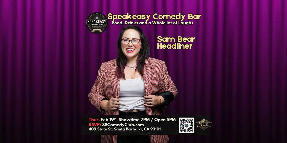 Meet Samantha Bearman, headliner, better known as the indomitable Sam Bear, a comedic force hailing from the sun-soaked shores of SB, CA.