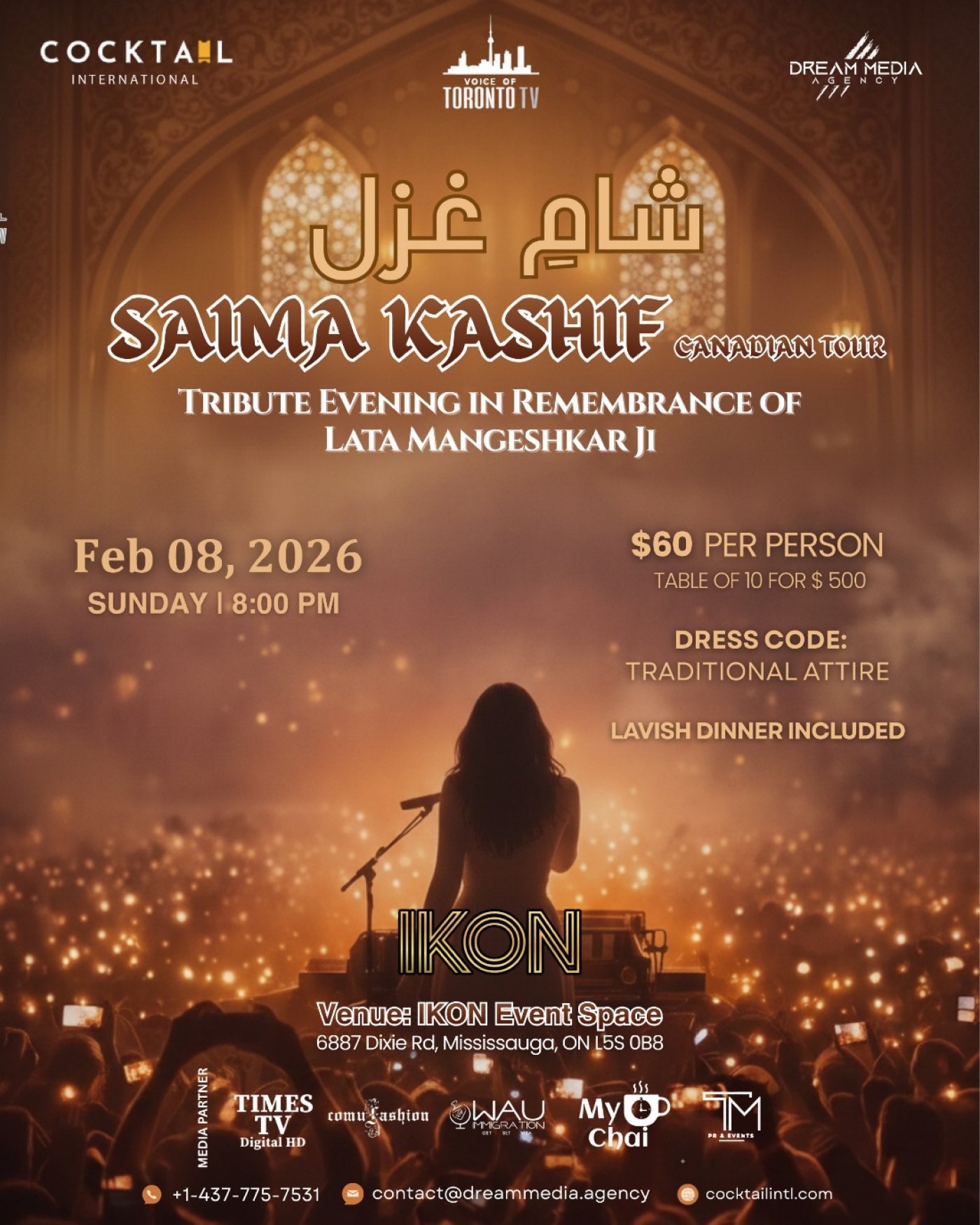 #SaimaKashif #GhazalNight #MississaugaEvents #IKONEventSpace #LiveMusic #TributeNight #LataMangeshkar #DinnerIncluded #TorontoEvents #BramptonEvents #SouthAsianEvents #CocktailInternational #DreamMediaAgency