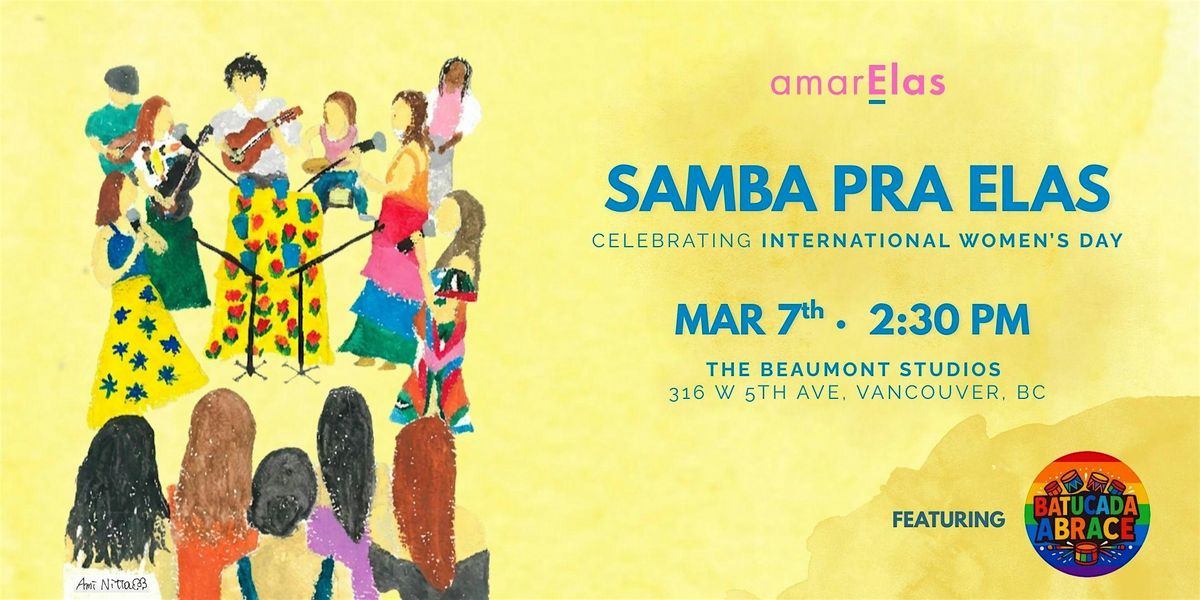 Samba Pra Elas is a women-centered roda de samba celebrating International Women’s Day through music, joy, and community. Led by amarElas, a band of Brazilian women musicians in Vancouver, this event highlights songs by iconic female artists and honors the strength, creativity, and vibrance of women in samba.