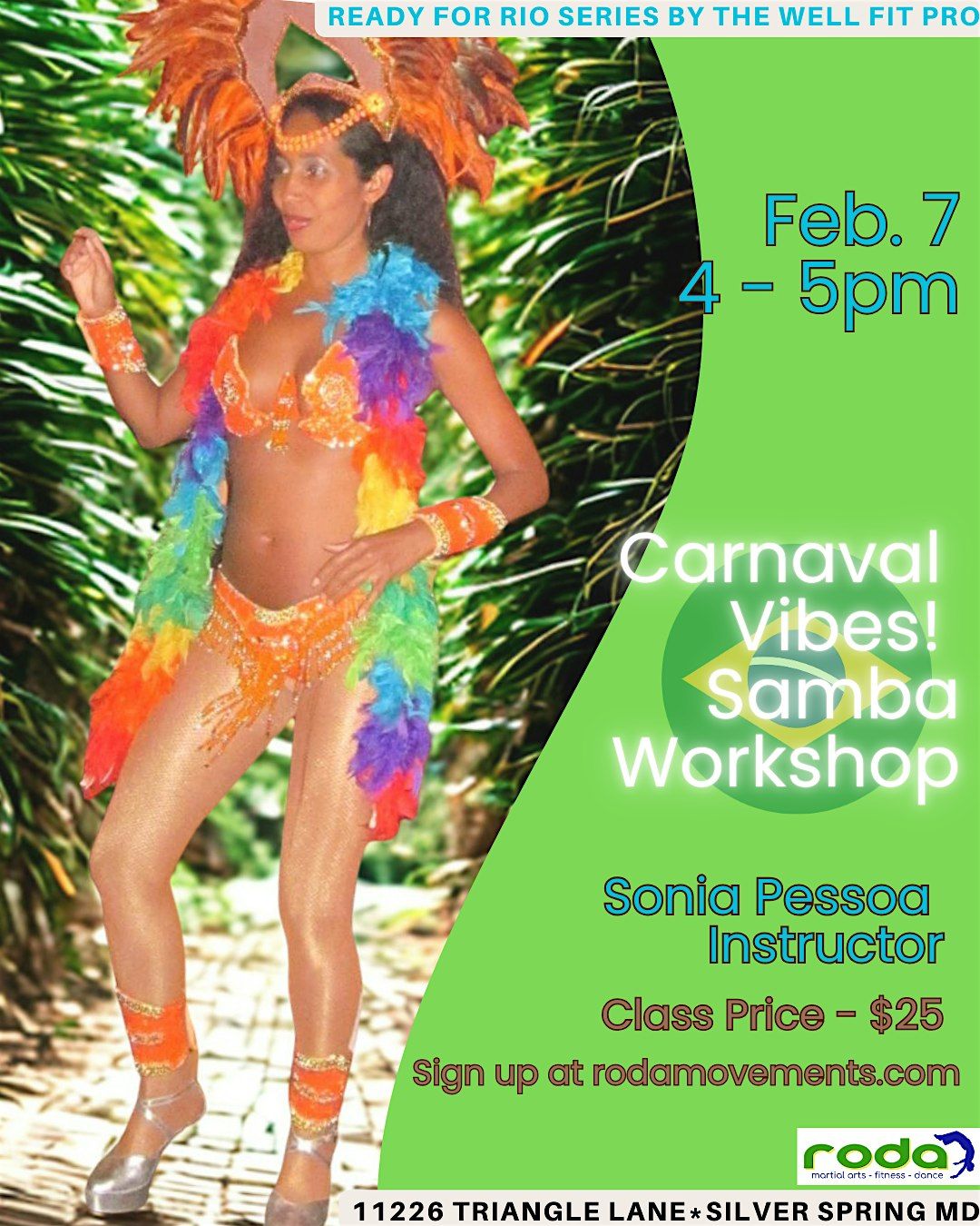 We're bringing the joy of Brazil to you! Learn samba and catch Carnaval Vibes with the legendary Sonia Pessoa in this dance class!