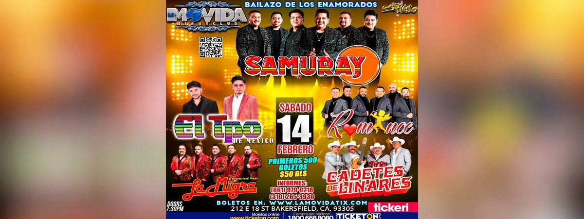 Join us for 'SAMURAY ROMANCE Y MAS', a groundbreaking exciting event at La Movida Night Club de Bakersfield, Bakersfield, CA, United States. This event is a cornerstone of innovation in the industry. Engage with experts, explore new horizons, and elevate your understanding of the exciting landscape. Register now to secure your spot at this landmark event. #SAMURAYROMANCEYMAS #event #exciting #BakersfieldEvents #CAEvents