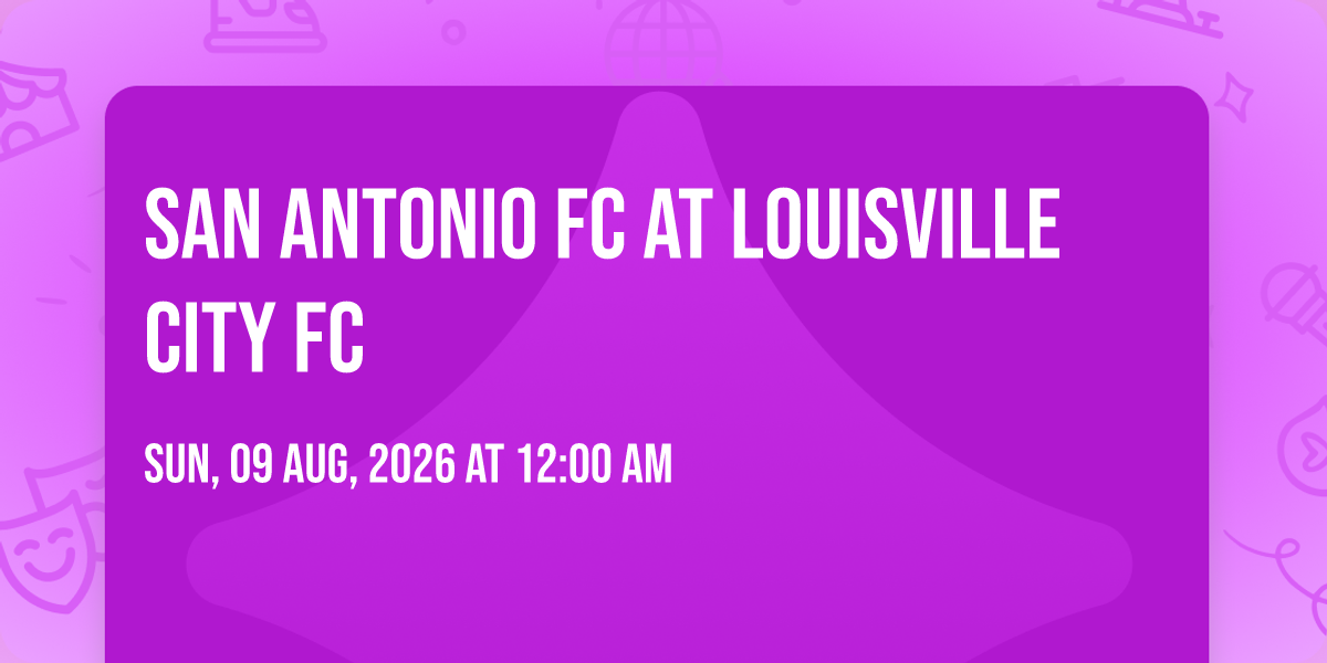 📍 Location: 38.2596, -85.7333🌟 Step into a world of wonder at San Antonio FC at Louisville City FC, where extraordinary moments await! 🏛️ Located at Lynn Family Stadium in dynamic Louisville, KY, this event will become the talk of the town. 📅 Join us on August 9th, 2026 at 12:00 AM for a celebration that defies the ordinary. ✨ This curated experience brings together the best of entertainment, culture, and community spirit. Every detail has been thoughtfully planned to ensure an unforgettable experience for all our guests. 🎯 Take advantage of this opportunity to be part of something special. 🎊 Early registration is recommended as space is limited!