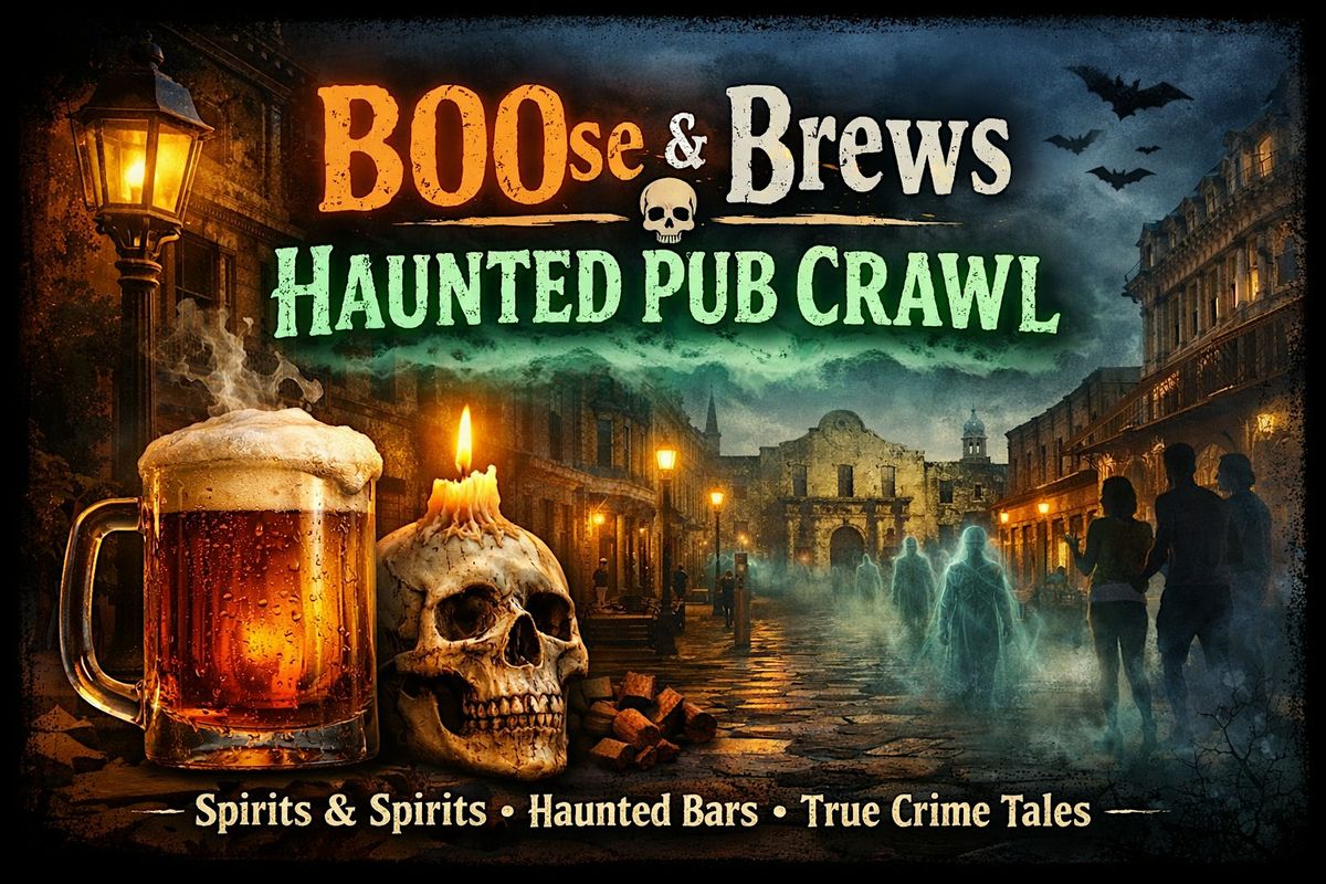 Join the San Antonio Haunted Pub Crawl – BOOse & Brews for spooky sips and ghostly fun in person!
