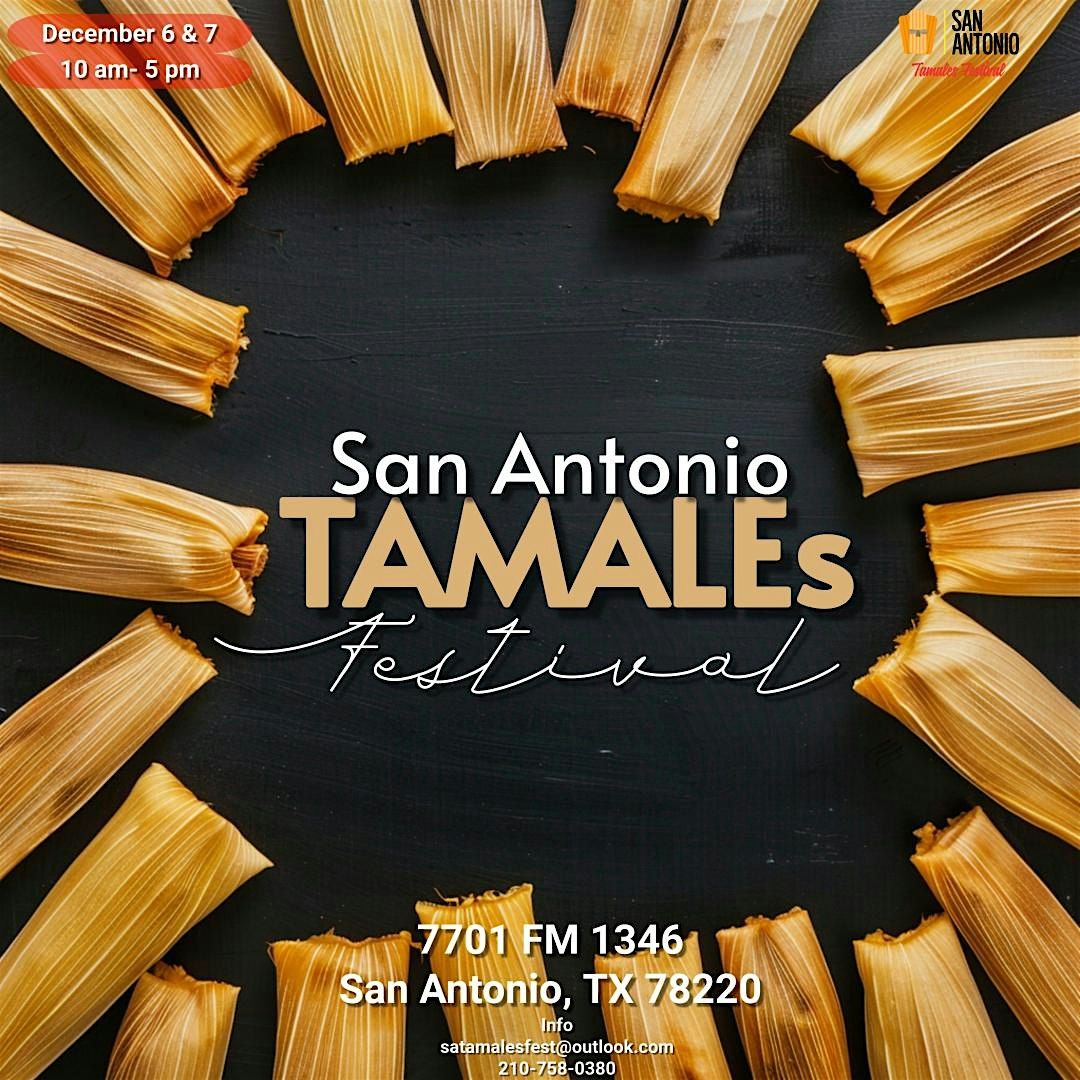 TAMALES, TAMALES GET YOUR TAMALES 6th annual, San Antonio Tamales Festival is ready for another Special moment with Tamales and More. We are at 7701 FM 1346, San Antonio, TX 78220. This ultimate 2026 event is ready with plenty of space for our numerous Tamal vendors, Food vendors, Holiday Merch vendors.