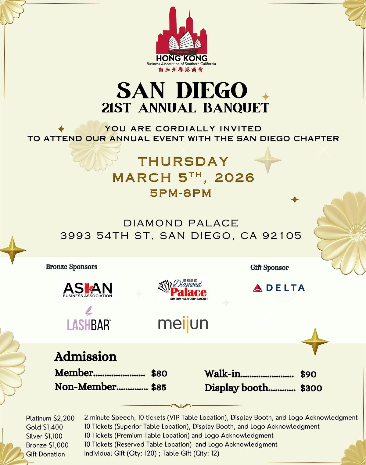 HKBASC is pleased to invite you to join us for a special evening with our San Diego Chapter as we host the 21st Annual Banquet. Building on the great energy and success of last year’s celebration, this year’s banquet brings us together once again to reconnect, celebrate our community, and strengthen the bonds within the HKBASC family.