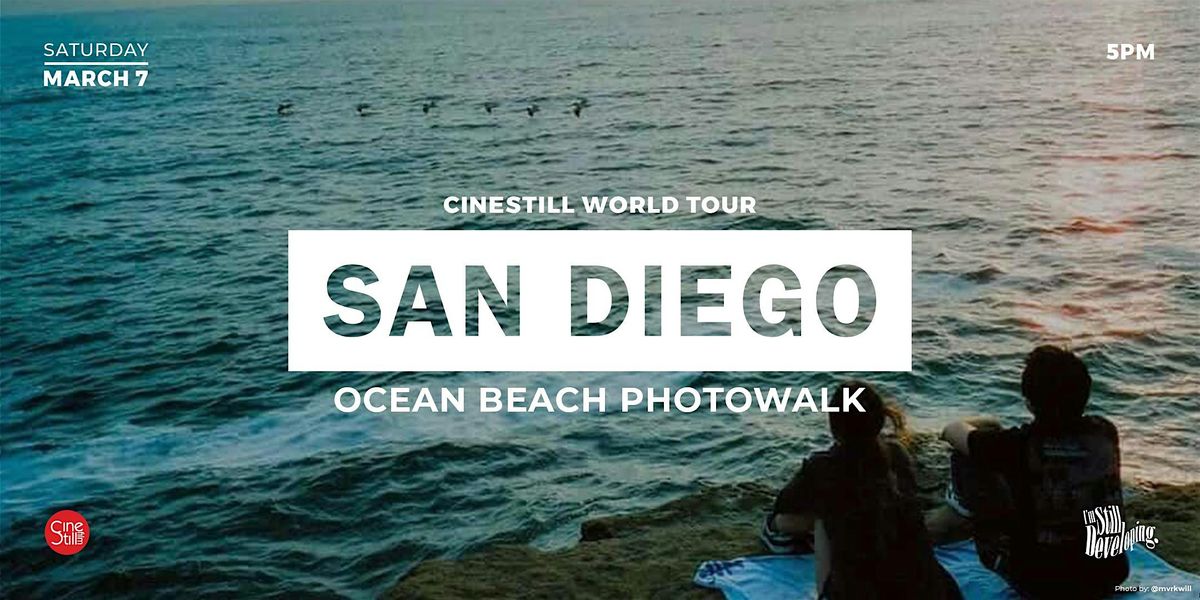 Join us for an evening photowalk through one of San Diego's most vibrant neighborhoods and beaches on Saturday, March 7th, beginning at 5pm. Hosted by CineStill and I'm Still Developing! This walk will take us through the lively and character filled area of Ocean Beach into the city as golden hour sets in. We’ll meet first at Veterans Plaza and head out shortly after, so don’t be late!