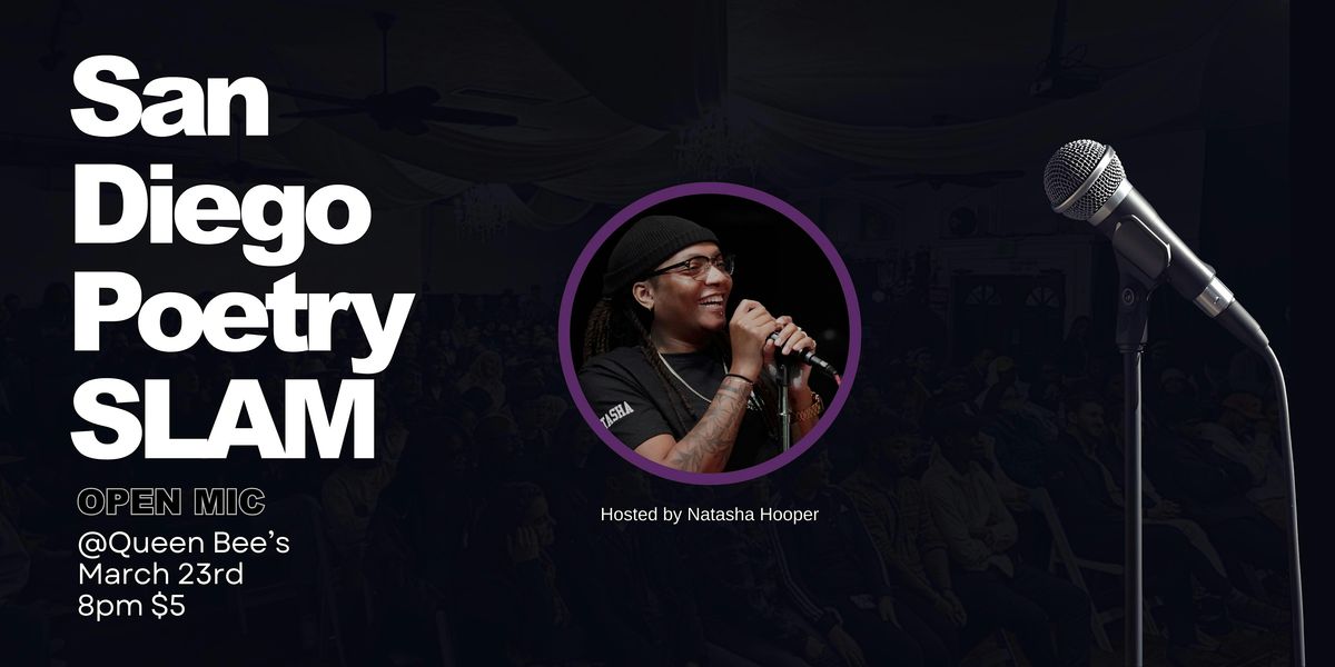 Welcome to the San Diego PoetrySLAM Open Mic at Queen Bee's Art and Cultural Center! Join us on March 23rd, 2025 at 8:00 PM (Pacific Time) for a night filled with creativity and expression. Bring your poems or just come to listen and enjoy the vibes. Let's celebrate the power of words together in the heart of San Diego. Don't miss out!