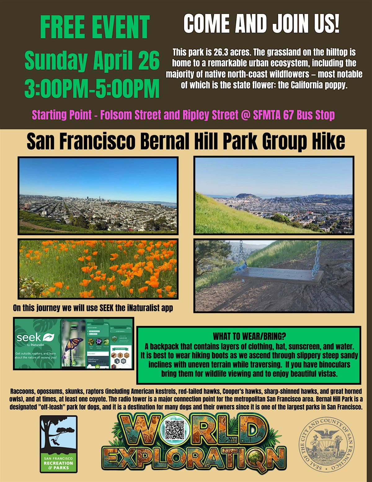 Let's explore the hidden trails and scenic views of Bernal Hill Park on a group hike with fellow nature enthusiasts!