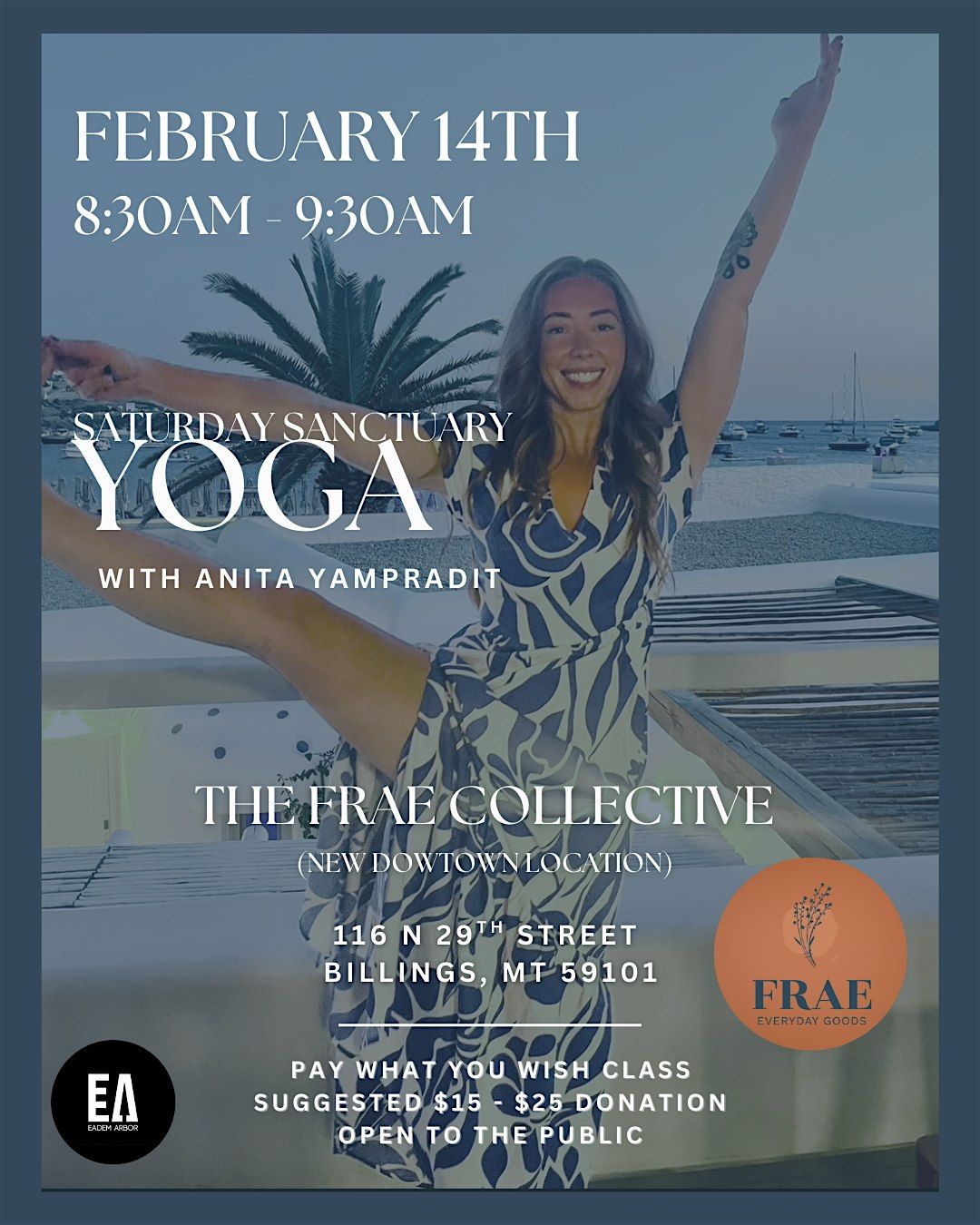 Start your Saturday with intentional movement and community care. This one-hour yoga flow is a chance to connect breath and body in a beautiful, curated space with our friends at Frae Collective in Downtown Billings. Come become a part of the community! We can't wait to see you there.