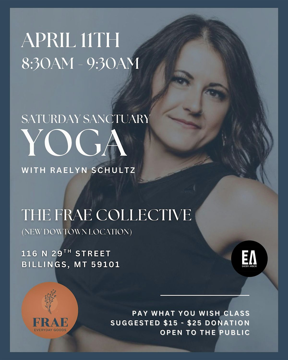 Start your Saturday with intentional movement and community care. This one-hour yoga flow is a chance to connect breath and body in a beautiful, curated space with our friends at Frae Collective in Downtown Billings. Come become a part of the community! We can't wait to see you there.