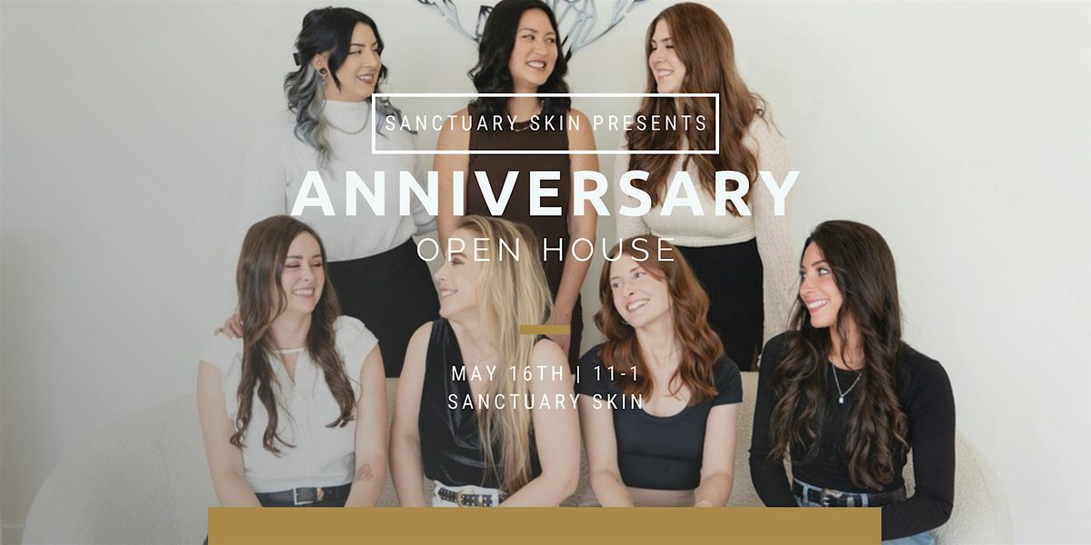 Join us for Sanctuary Skin’s Anniversary Open House with exclusive discounts, giveaways, live demos, free consults, refreshments, and more!