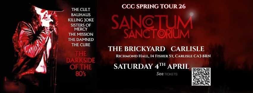 Described as a decade defining show – Sanctum Sanctorium faithfully recreate many of the dark eighties biggest alternative anthems from The Sisters of Mercy and The Cult, Killing Joke and The Cure to Siouxsie & The Banshees and many more. Startlingly authentic – A must see concert for anybody with a love of the gothic genre. Expect all the biggest hits and a few surprises. Break out the black eyeliner and dust down your leather jacket. Smoke machines at the ready…..A dark and truly epic performance awaits youDisclaimer: