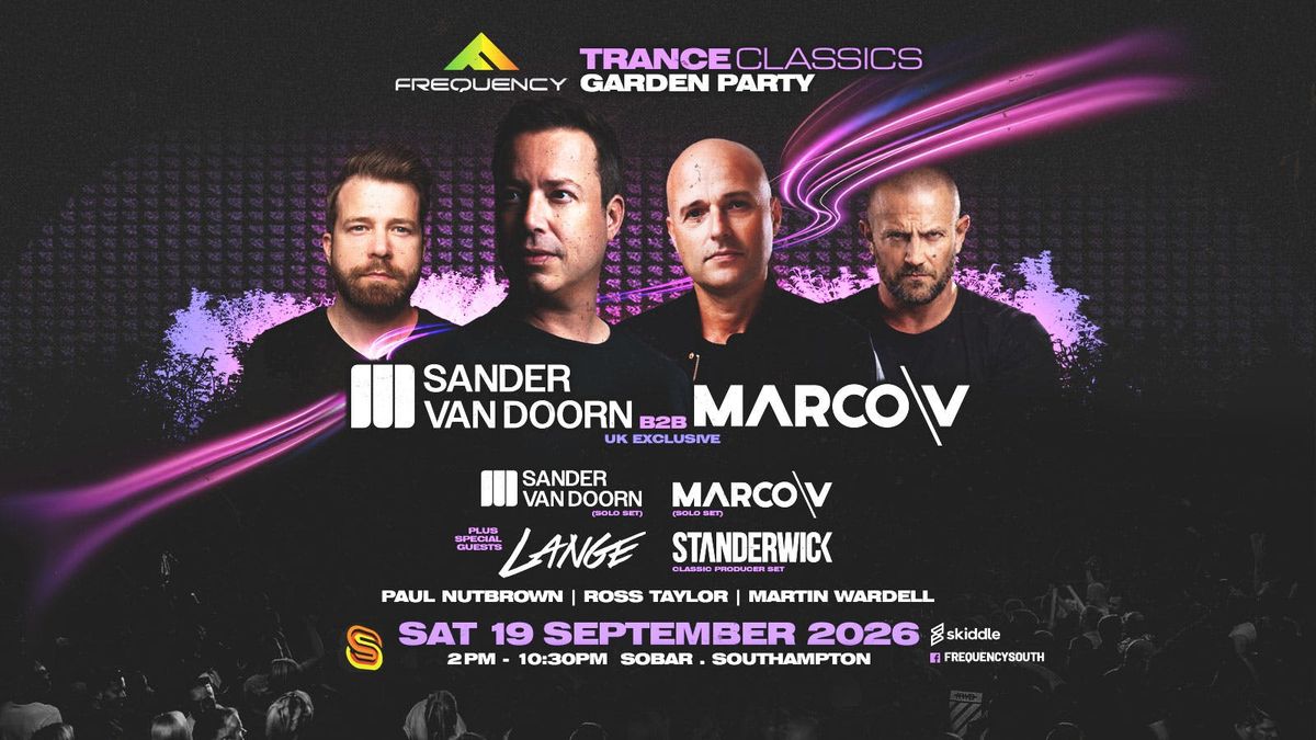 Frequency returns to the garden on Saturday 19th September 2026 with an elite lineup, featuring a UK-exclusive B2B never before seen in the UK.Set against the lush backdrop that's become synonymous with the series, this much-anticipated return brings the unmistakable Frequency energy back where it belongs - under open skies, surrounded by great music lovers, and powered by a mega SANDER VAN DOORN b2b MARCO V exclusive aswell as solo sets from each. Joining this monster line up are the legendary Frequency favourites LANGE and STANDERWICK completing this classic line up. Expect cutting-edge sounds, euphoric moments, and the kind of atmosphere that only Frequency knows how to create.
