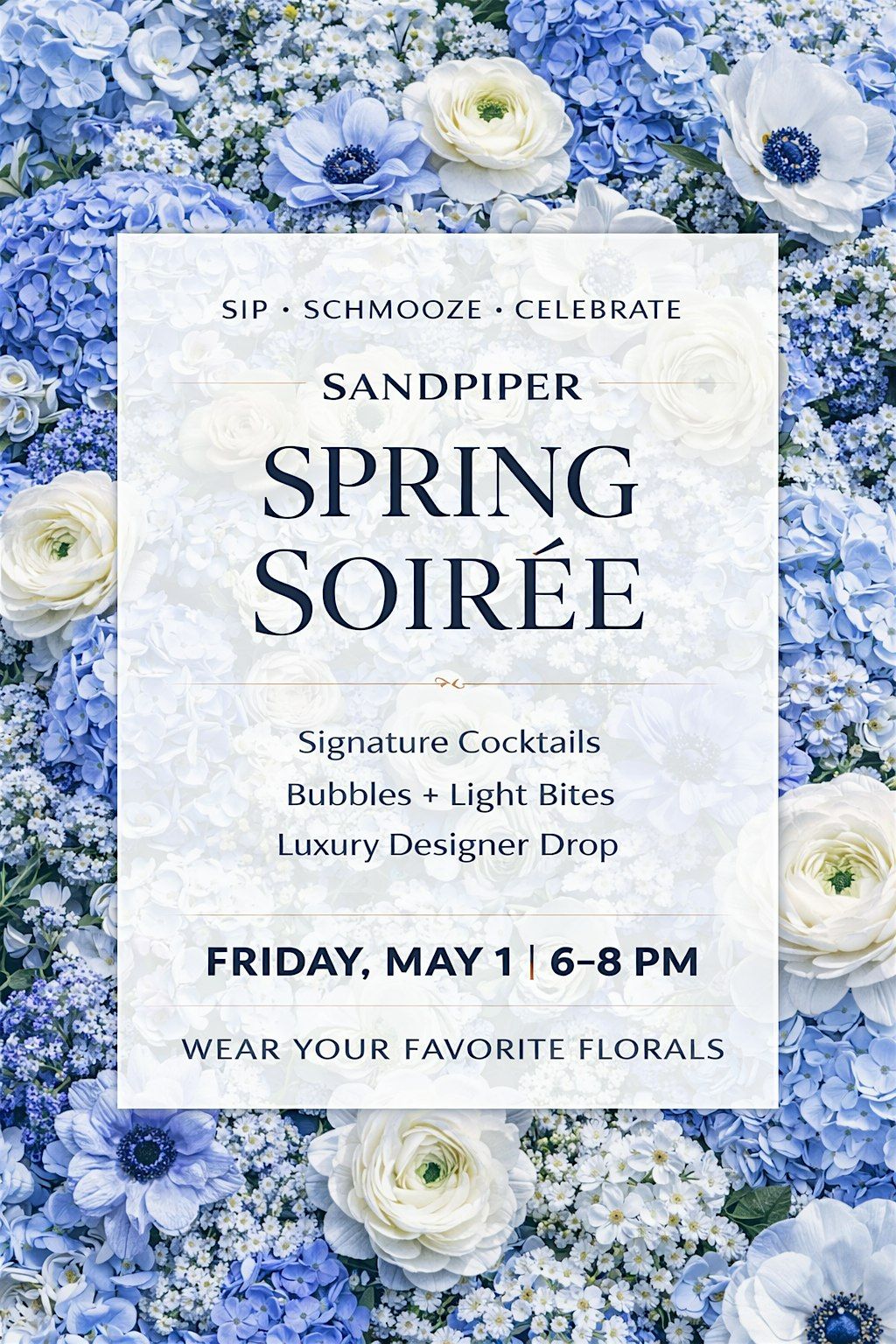 Join us for an elevated evening at Sandpiper—where luxury and designer shopping, champagne, and fashion lovers come together.