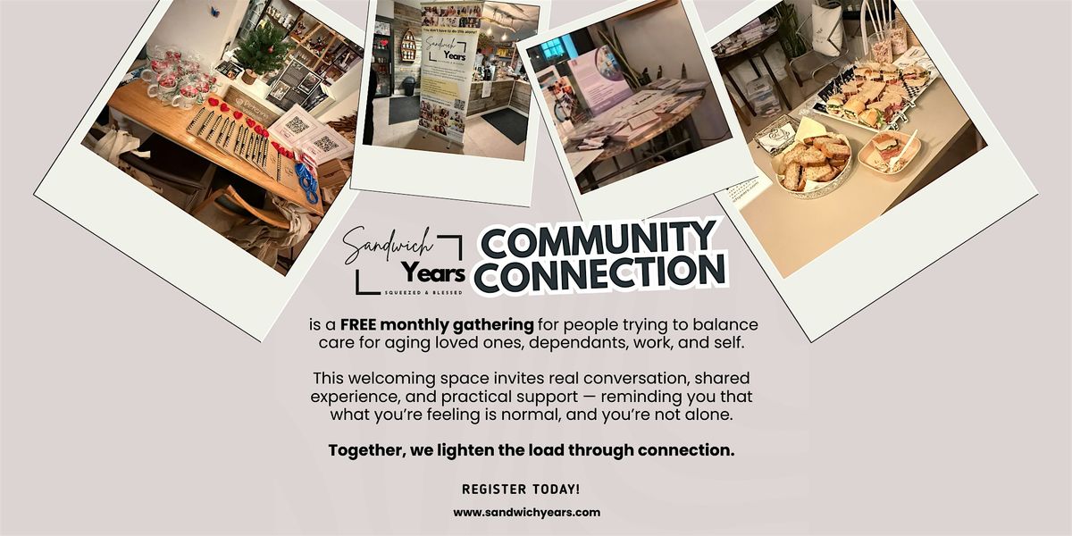 Sandwich Years Community Connection is a monthly gathering for people in the Sandwich Generation β those caring for aging loved ones while supporting children, careers, and their own well-being.
