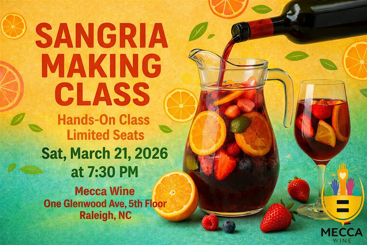 Calling all wine lovers! Our Sangria Making Class & Wine Tasting event is the perfect way to kick off any special occasion. Impress your guests at all functions with the skills you'll learn from our Mecca Wine Team! You'll discover the secrets of creating a perfect Sangria while sipping on delicious wines during this tasting. This event promises to be a fun and interactive experience for all levels of wine enthusiasts. Don't miss out on this opportunity to hone your wine-making skills and take your hosting game to the next level! Eat before but light snacks will be provided!