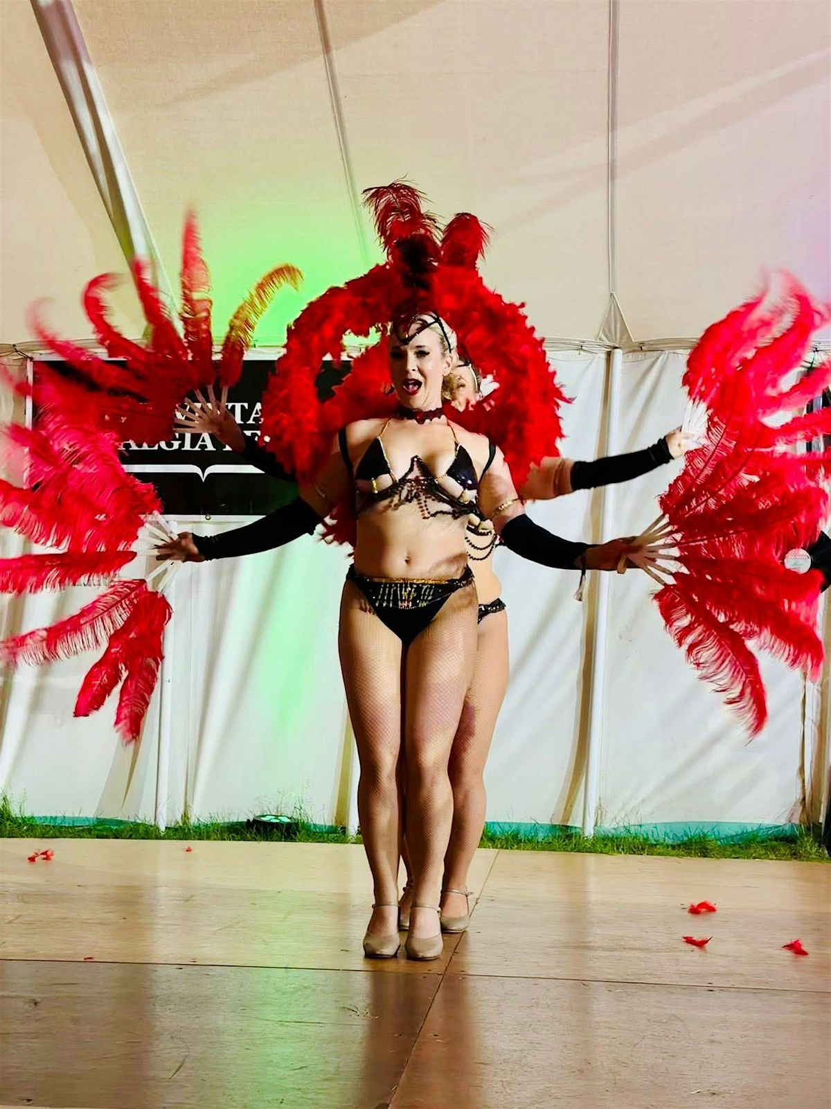 Successfully touring the UK for the past 15 years with her troupe The Flaming Feathers for clients such as The BBC, Koko London, Pinewood Studios, WOMAD, Mercedes Benz, LAKEFEST, The Royal Navy, Vintage Nostalgia Festival, The Ministry of Burlesque, Blackpool Tower Ballroom aswell as countless stage shows,