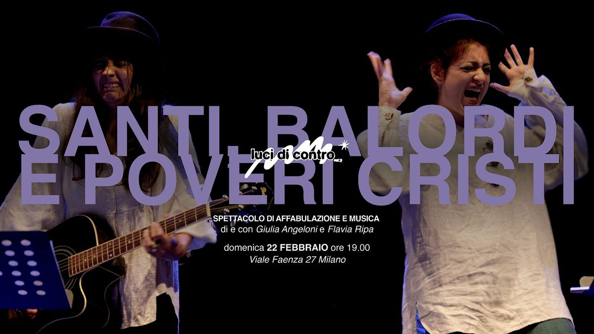 Santi, balordi e poveri cristi è uno spettacolo di affabulazione e musica che attinge a piene mani dalla tradizione delle fiabe, della cultura orale, dei dialetti e dell'immenso immaginario poetico e letterario della cultura popolare italiana. Banja e Sharazade, artiste scalcinate in cerca di ispirazione, nella speranza di liberarsi dai fenomeni da baraccone con i quali sono costrette a convivere, incontrano sulla propria strada personaggi ancora più strampalati, di cui volenti o nolenti si ritrovano ad essere cantrici ogni sera, nei propri spettacoli sgangherati.