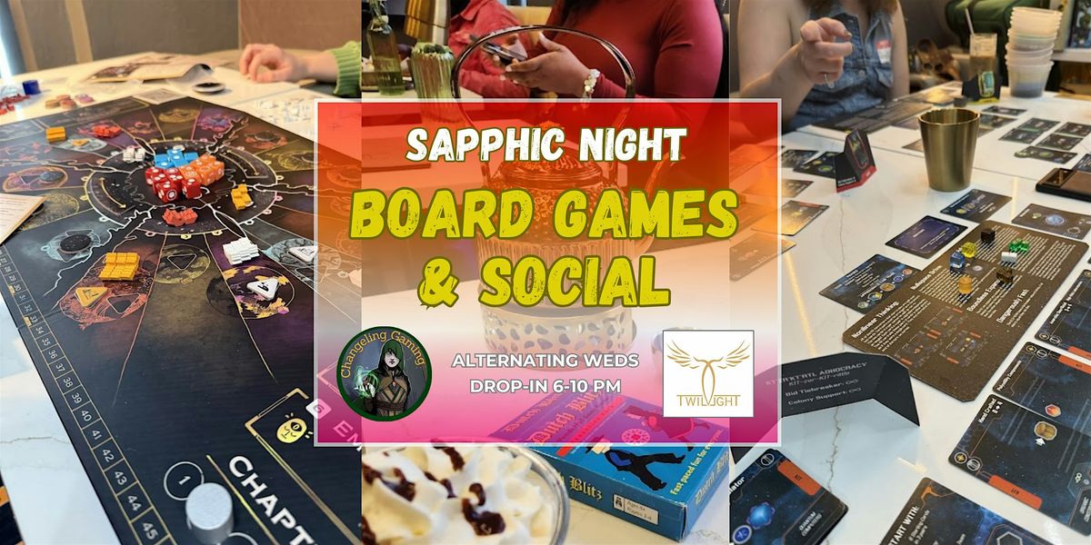 About Sapphic Nights with the : Our events are friendly socials for all those under the Sapphic Umbrella to gather and build connections over board games. Our goals for our events are to foster greater community, help build friendships, and support our safe space partners.
