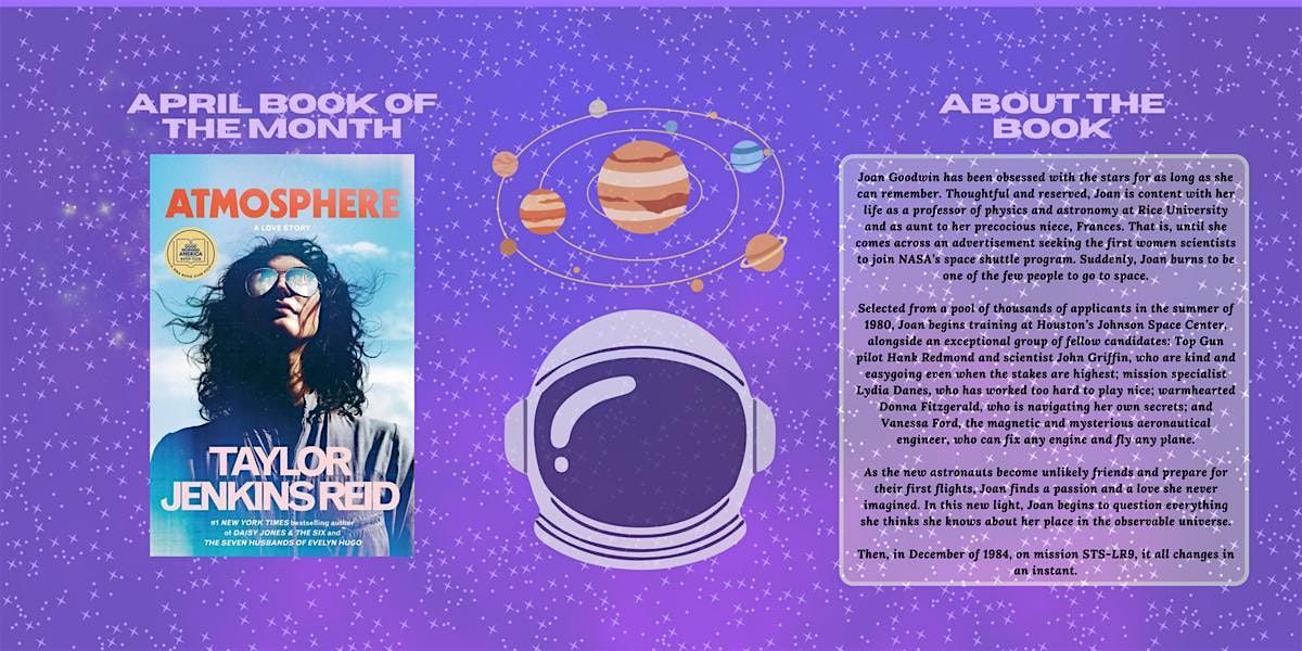 Join us while we discuss the April book of the month- Atmosphere by Taylor Jenkins ReidAbout this Event
