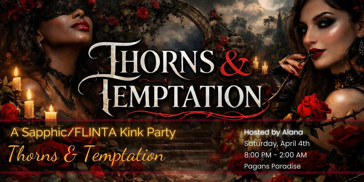 Thorns & Temptation invites sapphic, trans, nonbinary, and gender-expansive guests into a decadent spring garden where lush beauty meets joyful danger. Beneath candlelight and curling vines, the night unfolds with fIirtation, power exchange, and delicious mischief.