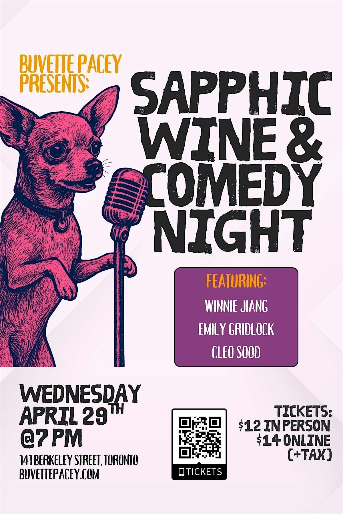 Our monthly Sapphic Wine Night is back-- this time with a lineup of comedians you don't want to miss!