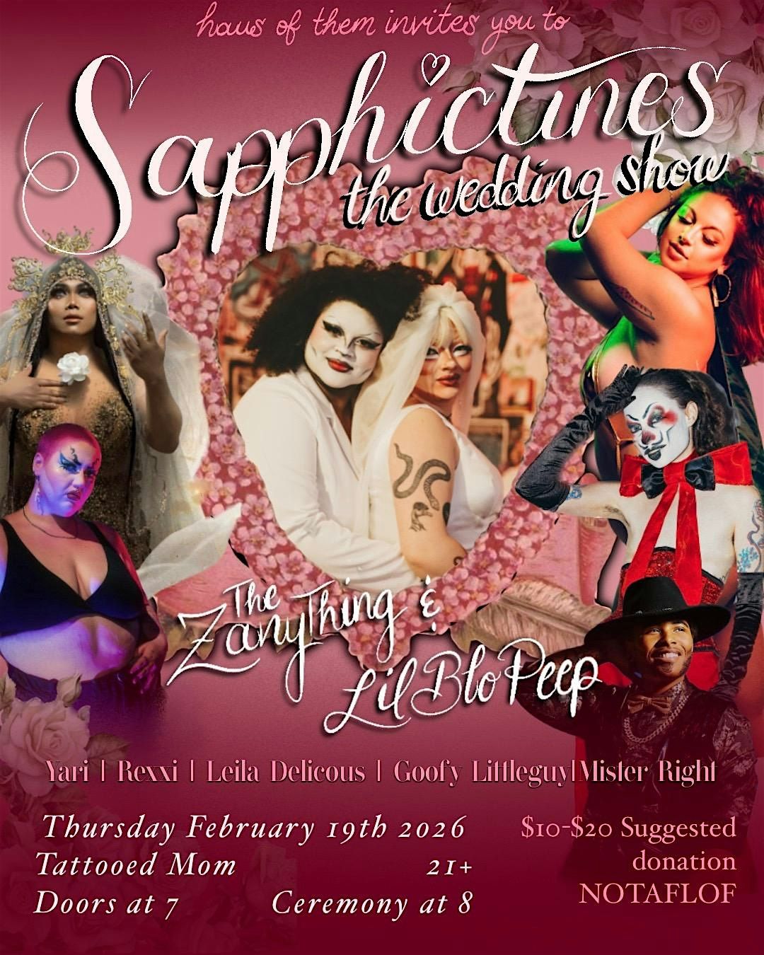 Come celebrate sapphic love at a drag, burlesque, and live music show of romantic proportions as The ZanyThing & Lil Blo Peep tie the knot!About this Event