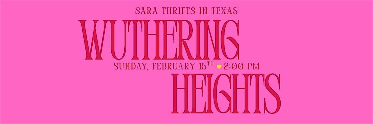 Join Sara Thrifts in Texas and the Dallas-Fort Worth secondhand shopping community for a social event and screening of Wuthering Heights on Sunday, February 15th at 2:00 PM (screening at 3:00 PM) at the AMC NorthPark 15 in Dallas, TX.