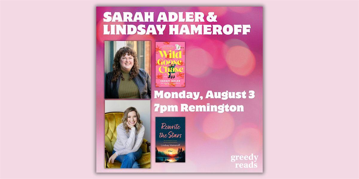 Join us on Monday, August 3, in Remington to celebrate the releases of Sarah Adler's new novel, Wild Goose Chase, and Lindsay Hameroff's new novel, Rewrite the Stars! Sarah and Lindsay will chat about their new novels, answer audience questions, and sign books.