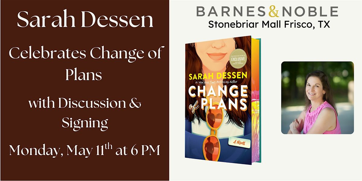 Enjoy an engaging conversation with Sarah Dessen, followed by audience Q&A. Plus, your ticket includes the Barnes & Noble Exclusive Edition of Change of Plans, which features a bonus epilogue and new ombre-stained and stenciled edges!