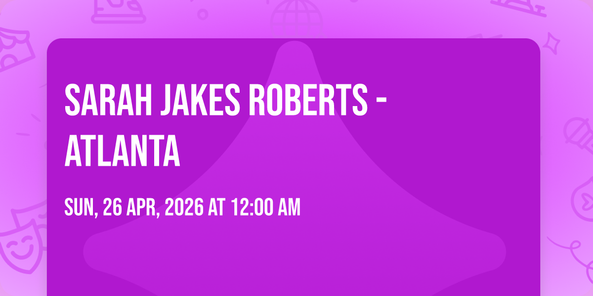 📍 Location: 33.7922, -84.388✨ Experience the magic of Sarah Jakes Roberts - Atlanta, where moments become memories that last a lifetime! 🏛️ The iconic Center Stage Theater - Atlanta in Atlanta, GA sets the perfect stage for an unforgettable celebration on April 26th, 2026 at 12:00 AM. 🌟 It's been a curated experience that brings together the best of entertainment and innovation, creating an atmosphere of wonder and excitement. From the moment you arrive, you'll be immersed in a world where the ordinary transforms into the extraordinary. 🎊 Book early to secure your place in what promises to be an event that will be talked about for years to come!