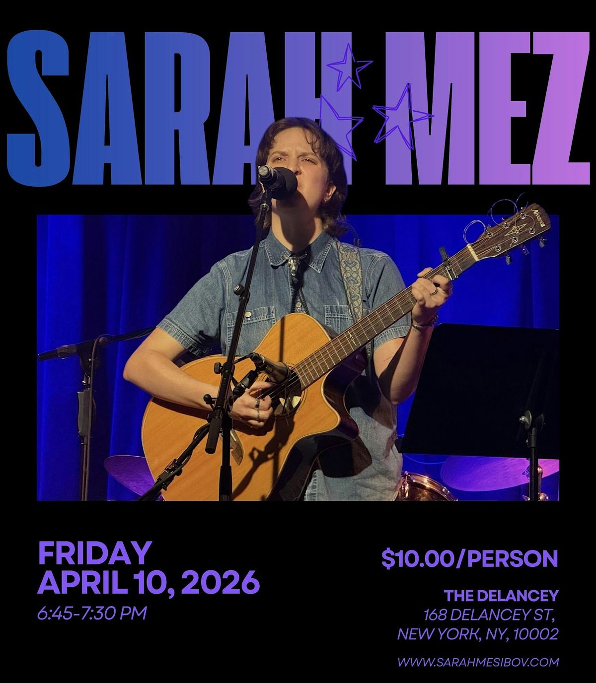 Do you love Carole King, Stevie Wonder, and KT Tunstall? Then you're gonna want to come see NYC singer/songwriter Sarah Mez at the Delancey! April 10th at 6:45pm. See you there:)