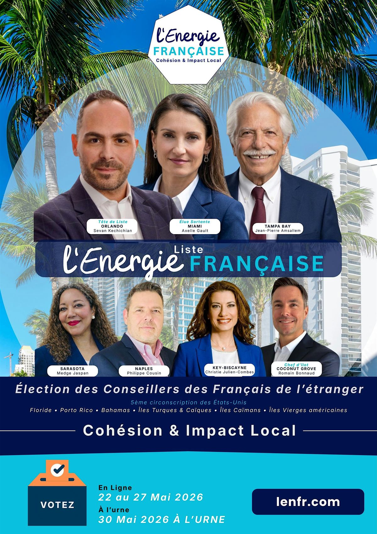 Avant le 24 Avril, inscrivez-vous sur la liste electorale pour pouvoir voter en ligne (22-27 Mai) ou à l'urne (30 Mai à Miami).