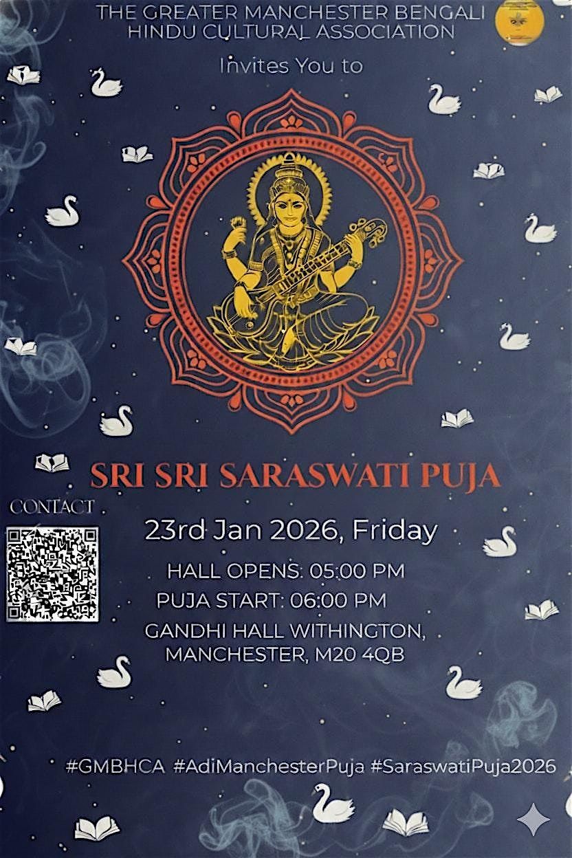 Namaskar! The Greater Manchester Bengali Hindu Cultural Association (GMBHCA) warmly invites you to celebrate Sri Sri Saraswati Puja 2026.