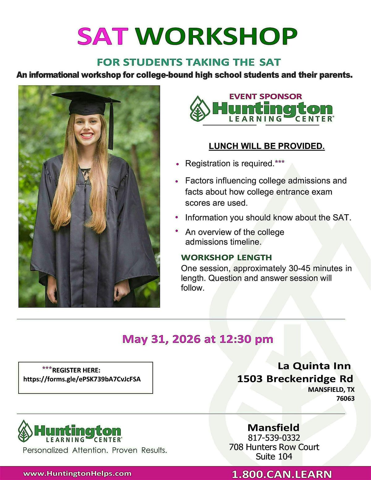 Get ready to rock your SAT with our super chill in-person SAT Informational Workshop! Whether you’re starting fresh, or have already registered for the SAT, this workshop’s got your back. Meet other students and interact with our SAT prep specialist from Huntington. Don’t miss out on this chance to level up your game!