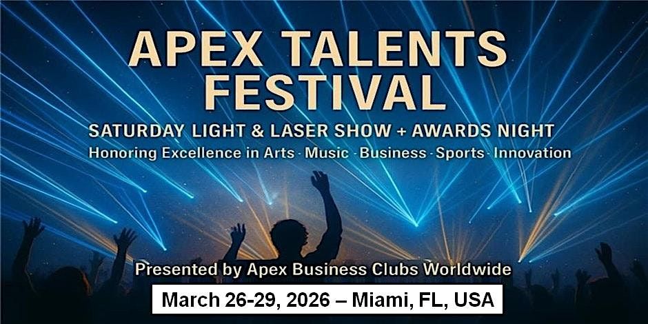Open to all Apex Rising Stars performers, Apex Master Expo exhibitors, Golf Tour players, filmmakers, influencers, biohacking & beauty innovators, SME & tech founders, investors, mobility & travel partners, and invited VIP guests.