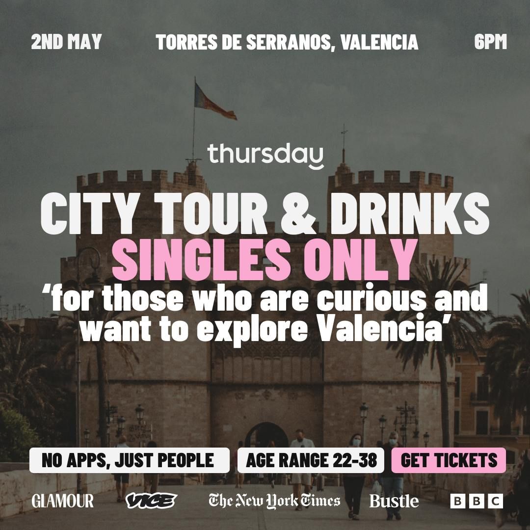 ⏰ Tour starts at 6:00 PM — come early and mingle! No refunds.💫 40% of guests come solo — so show up as your bold, beautiful selfFollow Thursday Valencia Instagram account to be in the know of what’s coming up: thursday.valencia 👈Follow the global Thursday Instagram account 👈By purchasing a ticket to a Thursday Event you are agreeing to our T&C's and to abide by our Code of Conduct. Both found here.If you have any feedback about a specific event or about Thursday in general please use this form.By purchasing a ticket to a Thursday Event you are agreeing to our Privacy Policy and agreeing to abide by our Code of Conduct. For any complaints please use this form.