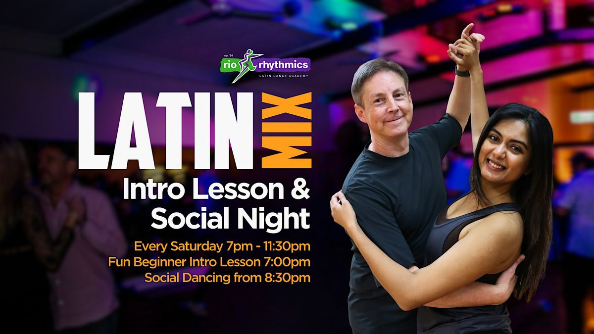 Get ready for a night of Latin music, dancing, and fun at our Saturday Night Latin Mix Social Night with Intro Lesson @ 7pm!