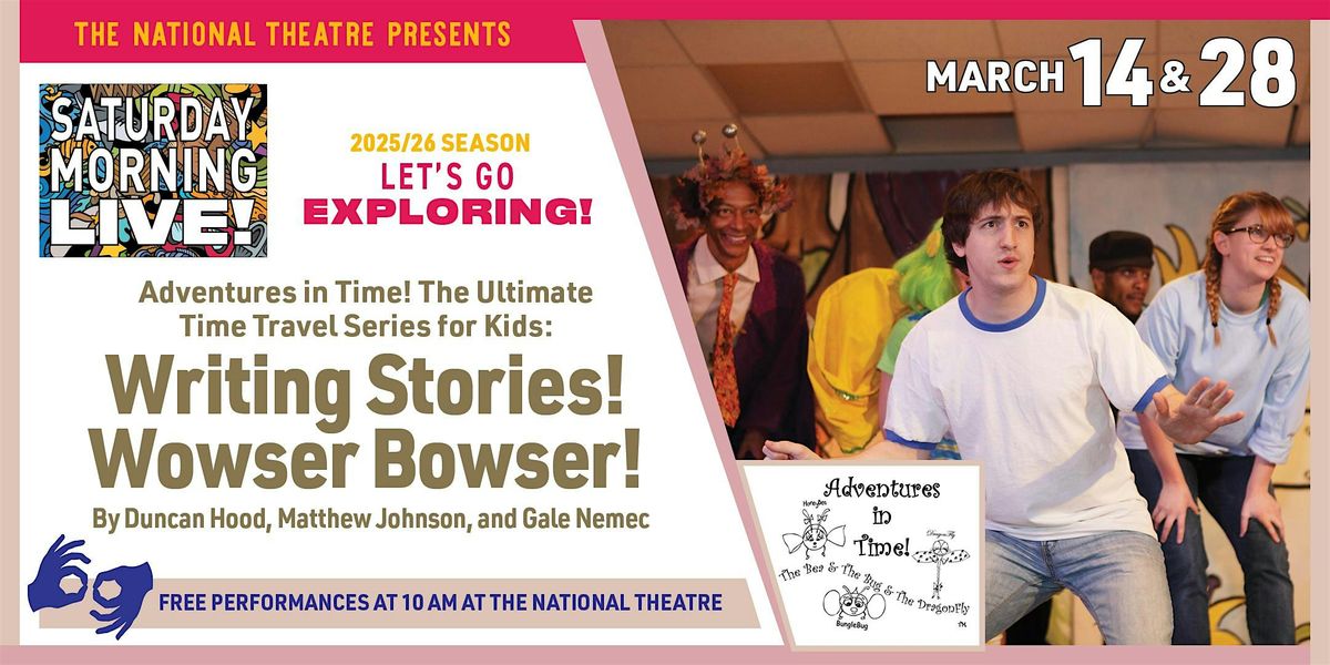 Adventures in Time! The Time Travel Series invites you on an interactive, musical journey into the past. Writing Stories! Wowser Bowser! introduces you to Washington, DC icons Helen Hayes and Benjamin Banneker. Learn about their important contributions and discover how to write your own stories. Written by Duncan Hood, Mathew Johnson, and Gale Nemec.
